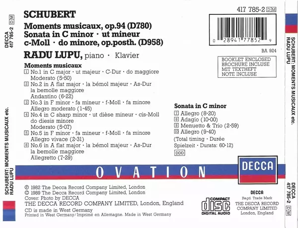| Tytuł | Moments Musicaux, D780 / Piano Sonata In C Minor, D958 |