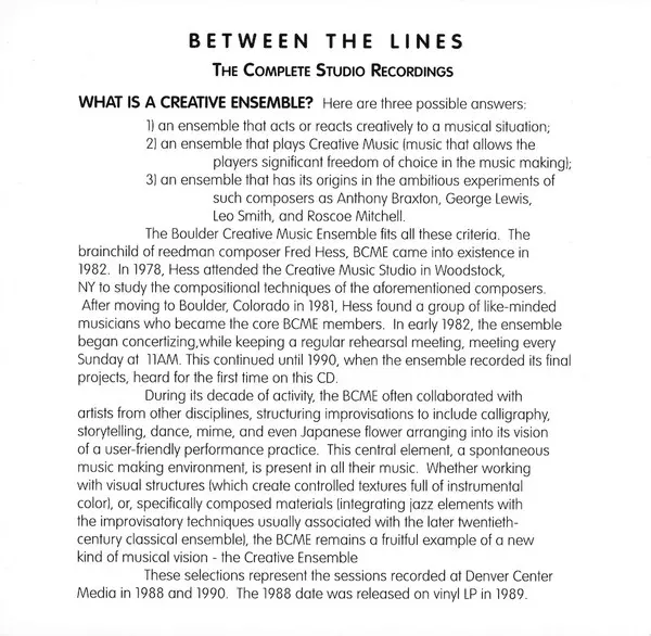 | Wykonawca | Fred Hess | Boulder Creative Music Ensemble |