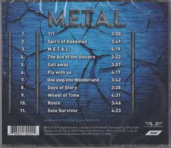 M.E.T.A.L. będzie dostępny w sklepach w kilku konfiguracjach: jako DigiPak CD, podwójny album winylowy, w formie cyfrowej oraz jako limitowany zestaw pudełkowy zawierający uchwyt na telefon komórkowy, magnes, plakat, kartę z autografem, naklejkę i małą kartę do gry. Bay szczegółowo wyjaśnia znaczenie karty znanej jako "życiowy joker", która jest tematycznie powiązana z piosenką "The Ace Of The Unicorn", w książeczce płyty. Programowy jest również tytuł pierwszego singla "111" (z "postrzeganym" podtytułem "The Number Of The Angels"). "W ezoteryce 111 jest liczbą aniołów", wyjaśnia Bay, "odgrywa również dużą rolę w moim życiu. Spotykam się z nią cały czas, niezależnie od tego, czy jest to numer pokoju hotelowego, rachunek w supermarkecie czy moja data urodzenia. Jestem oczywiście numerem jeden, a zatem osobą światła".