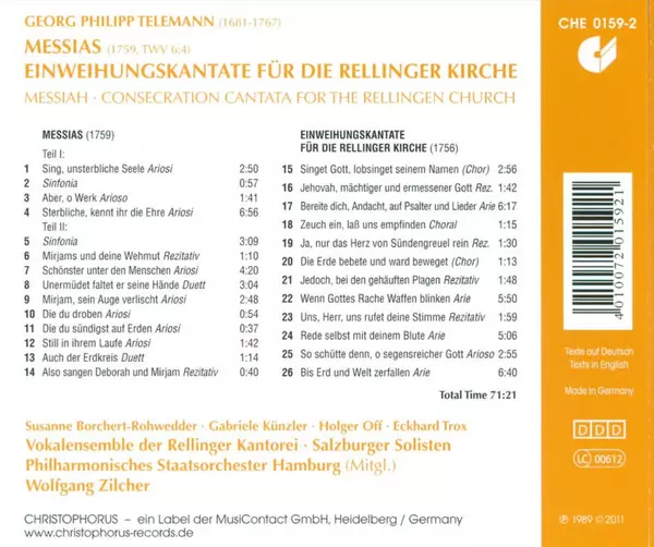 | Wykonawca | Georg Philipp Telemann | Philharmonisches Staatsorchester Hamburg | Rellinger Kantorei Und Orchester Der Rellinger Abendmusiken | Wolfgang Zilcher |
