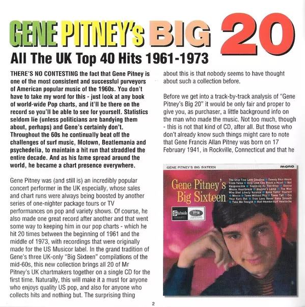 Tytuł | Gene Pitney's Big 20: All The UK Top 40 Hits 1961-1973 |