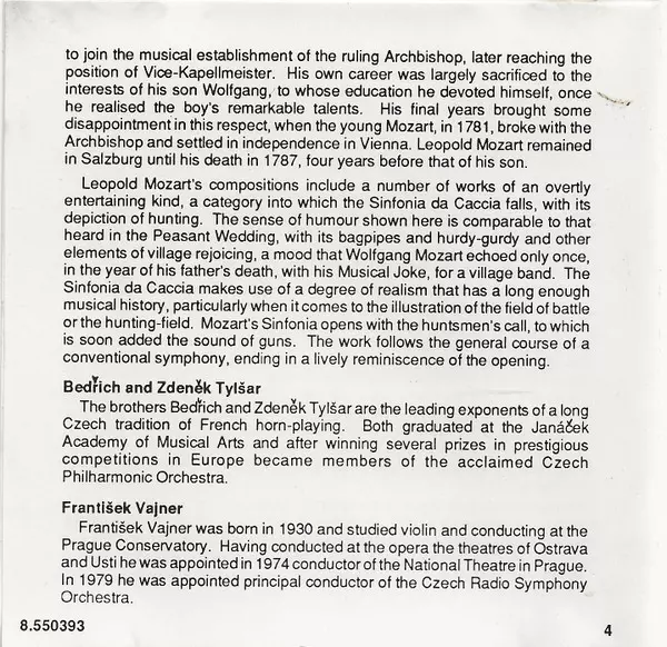 | Composed By Leopold Mozart | Horn [Principal Horns, Czech Philharmonic Orchestra] Bedřich Tylšar, Jindřich Petráš, Zdeněk Divoký, Zdeněk Tylšar | ||