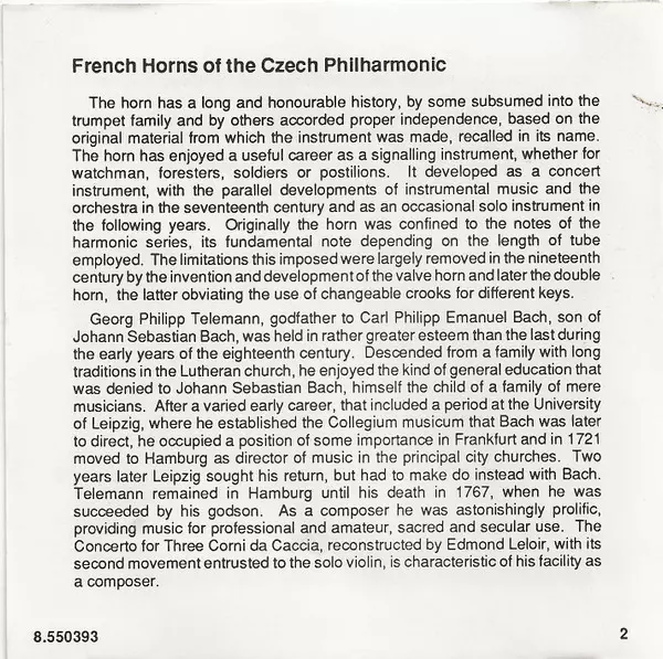 | Adapted By [Edited By] Edmond Leloir | Composed By Georg Philipp Telemann | Horn Bedřich Tylšar, Zdeněk Divoký, Zdeněk Tylšar | ||