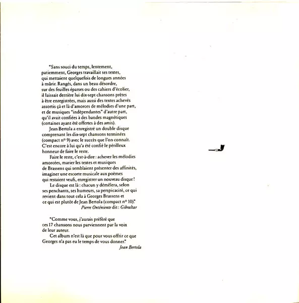 | Tytuł | Dernières Chansons De Brassens Par Jean Bertola |
