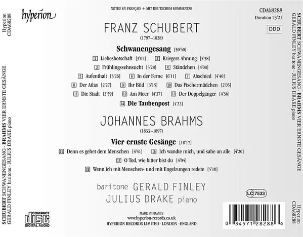 Wykonawca | Johannes Brahms | Franz Schubert | Gerald Finley | Julius Drake |
