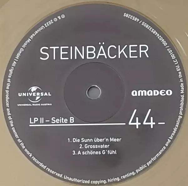 | Bass Mischa Krausz | Concertmaster Alfred Pfleger | Drums Jürgen Zöller | Guitar Robert Musenbichler | Keyboards, Organ [Hammond], Piano, Orchestrated By [Orchestra Arranged By], Producer Christian Kolonovits | Lyrics By, Vocals Gert Steinbäcker | Mastered By Mischa Janisch | Music By Dagmar Steinbäcker | Orchestra Das Grosse Wiener Symphonieorchester | Percussion, Recorded By, Mixed By Hartmut Pfannmüller | Programmed By Alexander Kahr | |||