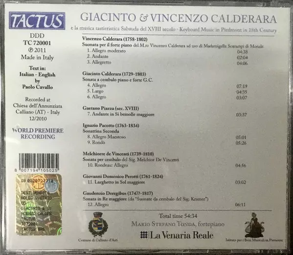 | Wykonawca | Giacinto Calderara & Vincenzo Calderara | Mario Stefano Tonda, Fortepiano |