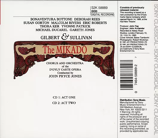 | Wykonawca | Gilbert & Sullivan | John Pryce-Jones | The D'Oyly Carte Opera Chorus | The D'Oyly Carte Opera Company Orchestra |