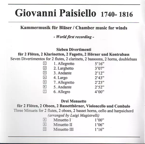 Wykonawca | Giovanni Paisiello | Luigi Magistrelli | Italian Classical Consort |