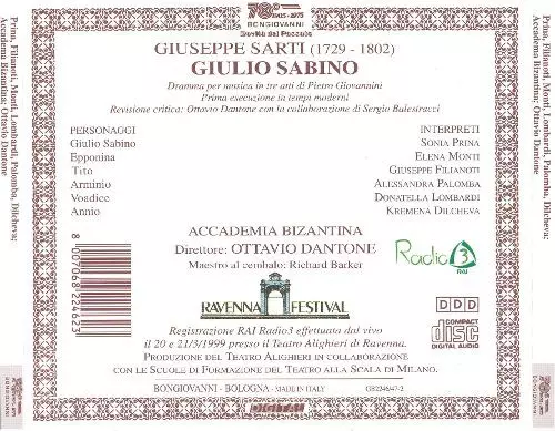 | Wykonawca | Ottavio Dantone | Sonia Prina | Accademia Bizantina | Giuseppe Sarti | Giuseppe Filianoti | Elena Monti | Alessandra Palomba | Donatella Lombardi | Kremena Dilcheva |