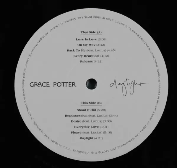 Grace Potter: Daylight Wersja na winylu LP w standardowe wydanie. Ta konkretna edycja została wydana w USA w wydawnictwie Fantasy dnia 8. listopada 2019. Album sięga do gatunku Rock i Alternative rock.
