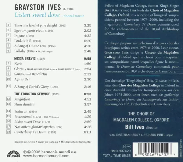 Wykonawca | Magdalen College Choir Oxford | Bill Ives | Grayston Ives |
