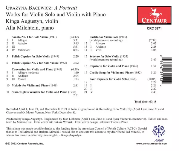 | Tytuł | Grażyna Bacewicz: A Portrait - Works For Violin And Piano |