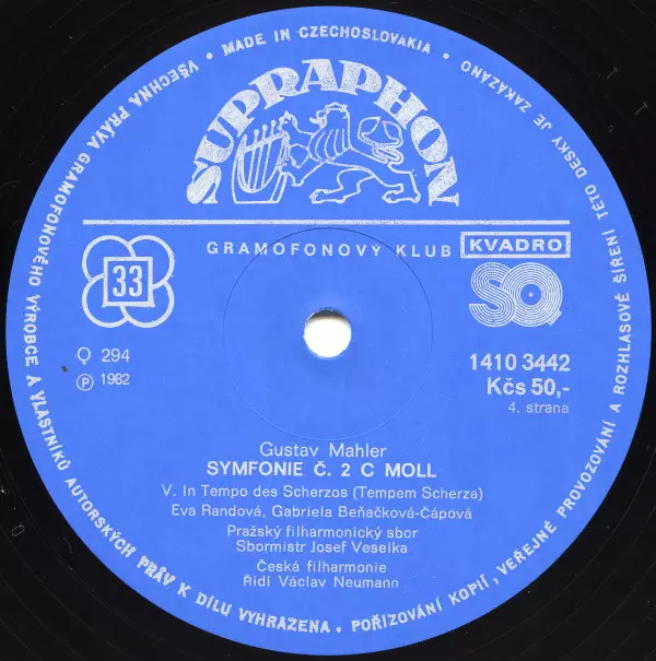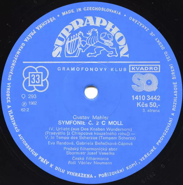 | Wykonawca | The Czech Philharmonic Orchestra | Václav Neumann | Gustav Mahler | Gabriela Beňačková | Czech Philharmonic Chorus | Eva Randová |