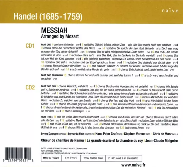 | Wykonawca | Wolfgang Amadeus Mozart | Georg Friedrich Händel | Choeur de Chambre de Namur | Jean-Claude Malgoire | La Grande Ecurie Et La Chambre Du Roy |