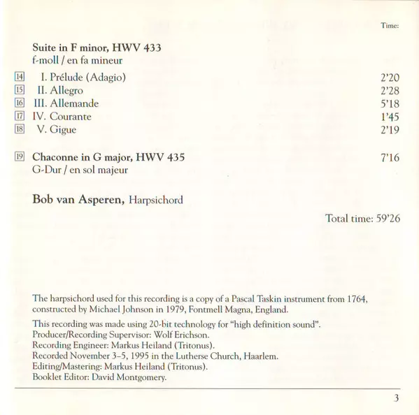 | Wykonawca | Georg Friedrich Händel | Bob van Asperen |