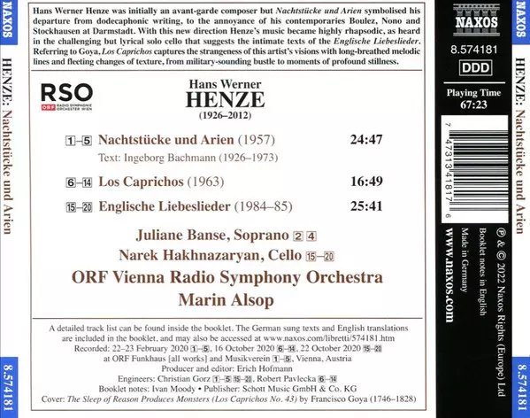 | Wykonawca | Hans Werner Henze | Marin Alsop | ORF Radio-Symphonieorchester Wien | Juliane Banse | Narek Hakhnazaryan |