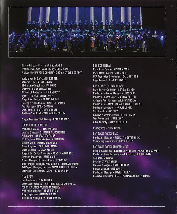 Hans Zimmer Zimmer zaprezentował swój nowy film koncertowy "Live In Prague" i towarzyszący mu album koncertowy w 2017 roku. Oba dokumenty dokumentują występ Zimmera w praskiej O2 Arena 6 maja 2016 roku, podczas którego niemiecki kompozytor filmowy, aranżer i producent muzyczny był wspierany na scenie przez 72-osobowy zespół składający się z czło...