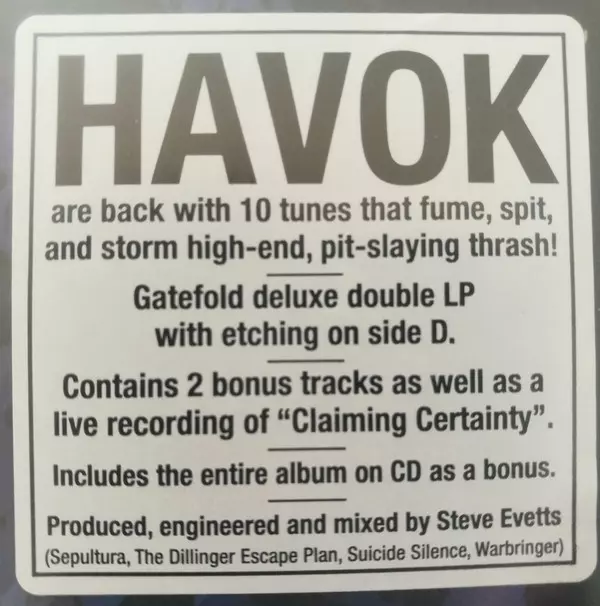 Havok The fourth album, "Conformicide," was released on March 10, 2017. The album was produced by Chris "Zeuss" Harris and mixed by Josh Wilbur. This is the band's first album released on Century Media Records. "Conformicide" is a concept album that deals with the current state of the world. The album's title track was released as a single on De...
