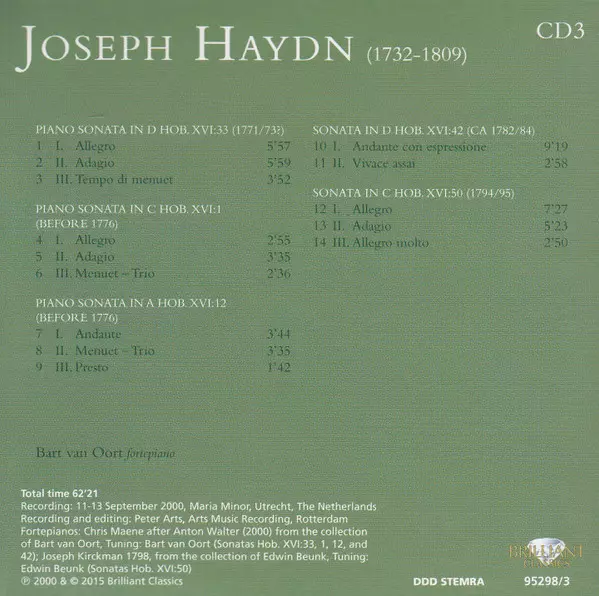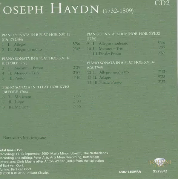 Joseph Haydn: Complete Piano Music Wersja na 16CD w standardowe wydanie. Ta konkretna edycja została wydana w wydawnictwie Brilliant Classics dnia 29. stycznia 2016. Album można sklasyfikować jako gatunek Muzyka klasyczna.