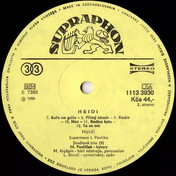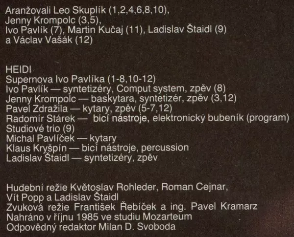 Heidi Janků Heidi's 1986 debut album is a mix of pop and rock songs with Czech lyrics. The album was successful in the Czech Republic and several songs became popular hits.