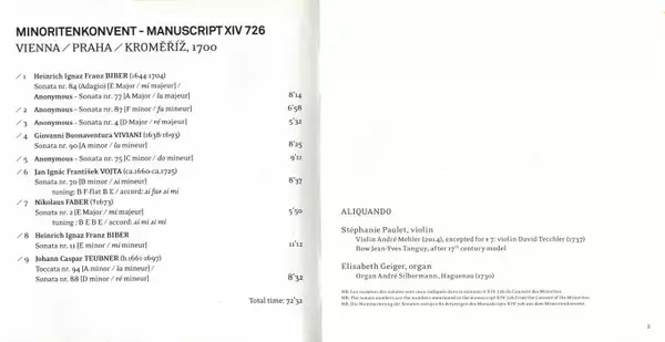 | Wykonawca | Heinrich Ignaz Franz Biber | Giovanni Buonaventura Viviani | Jan Ignác František Vojta | Nikolaus Faber | Johann Caspar Teubner | Aliquando | Stéphanie Paulet | Elisabeth Geiger |