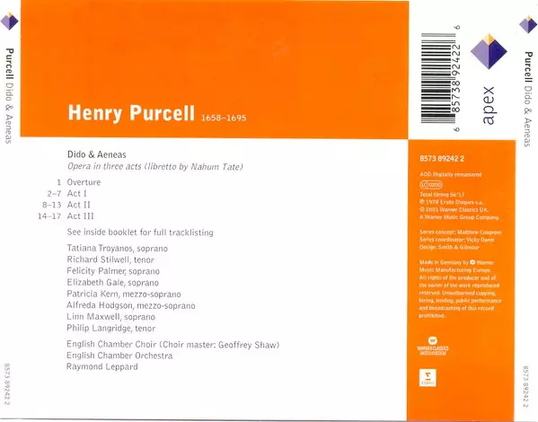 | Wykonawca | Henry Purcell | English Chamber Orchestra | Tatiana Troyanos | Felicity Palmer | Raymond Leppard | Richard Stilwell | English Chamber Orchestra Choir |
