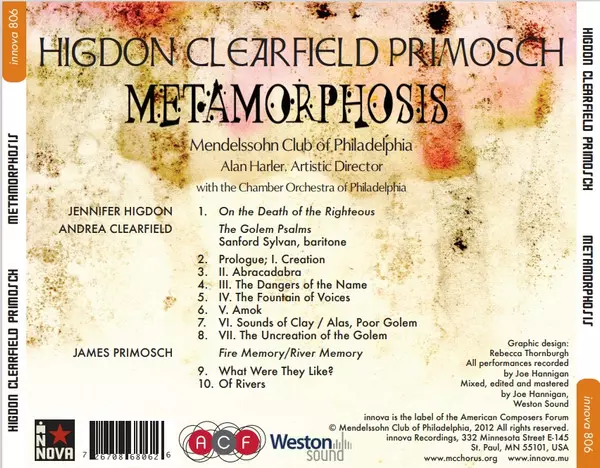 | Wykonawca | Jennifer Higdon | Mendelssohn Club Of Philadelphia | Andrea Clearfield | James Primosch | Alan Harler | Chamber Society Orchestra of Philadelphia |