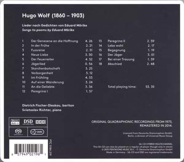 | Wykonawca | Sviatoslav Richter | Dietrich Fischer-Dieskau | Hugo Wolf |