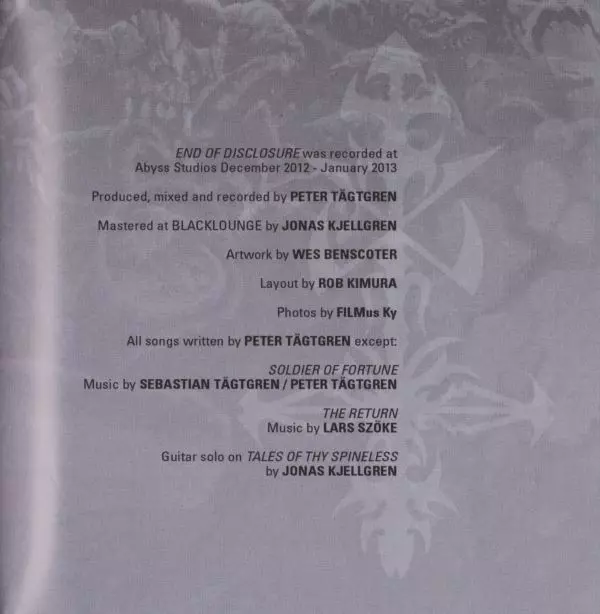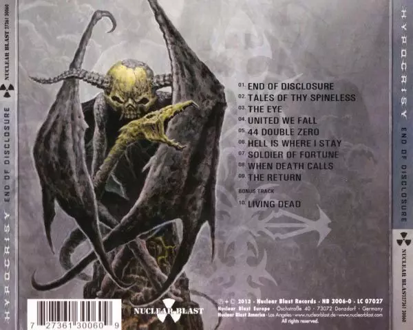 Recenzja "Pierwsze wrażenie: Hypocrisy robi wszystko jak zwykle, ale im wolno. Wielkie zagęszczenie hitów, rewelacyjny wokal". METAL MILLS. Robert Müller "'End Of Disclosure' jest przyjemnie zróżnicowany, obierając liczne oldschoolowe zakręty bez rezygnowania z chwytliwych melodii. Każdy znajdzie tu coś dla siebie." ROCK HARD, Frank Albrecht "Hi...