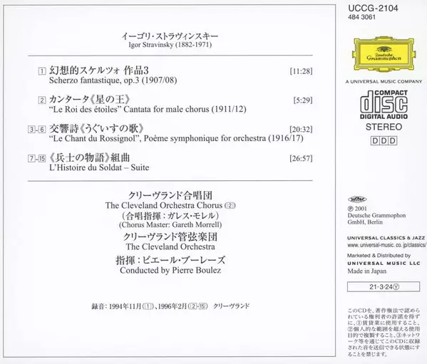 | Wykonawca | Igor Stravinsky | Pierre Boulez | The Cleveland Orchestra | The Cleveland Orchestra Chorus |