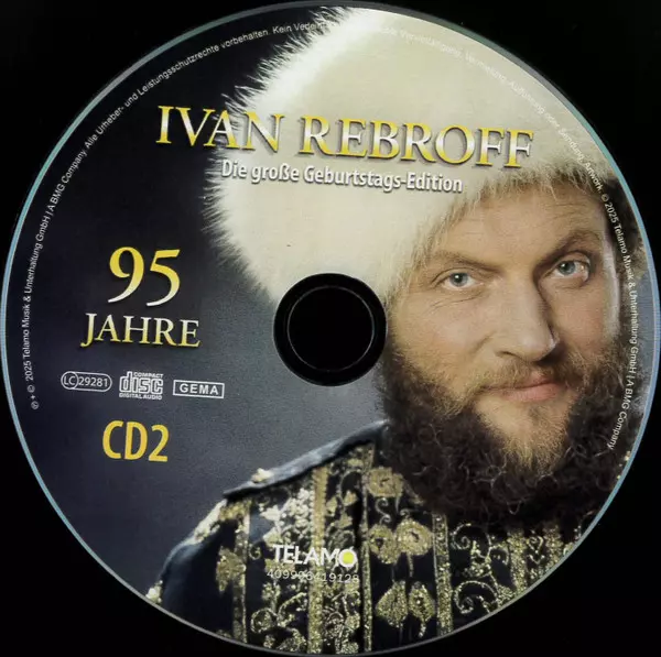 Ivan Rebroff: Die Große Geburtstag-Edition - 95 Jahre Wersja na 2CD w standardowe wydanie. Ta konkretna edycja została wydana w Niemcy w wydawnictwie TELAMO roku 2025. Album można sklasyfikować jako gatunek Folk, World, & Country.