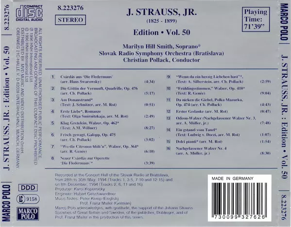| Wykonawca | Johann Strauss Jr. | Slovak State Philharmonic Orchestra, Košice | Christian Pollack | Marilyn Hill Smith |