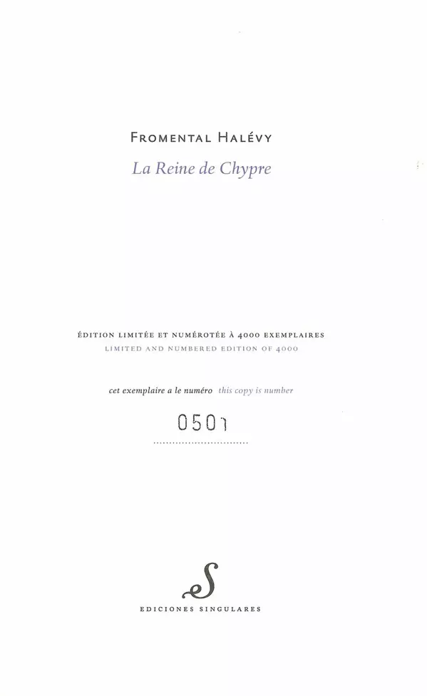 | Tytuł | La Reine De Chypre LTD | NUM |