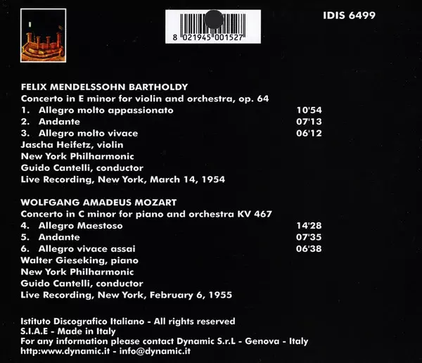 | Wykonawca | Wolfgang Amadeus Mozart | Felix Mendelssohn-Bartholdy | Jascha Heifetz | Walter Gieseking | Guido Cantelli |