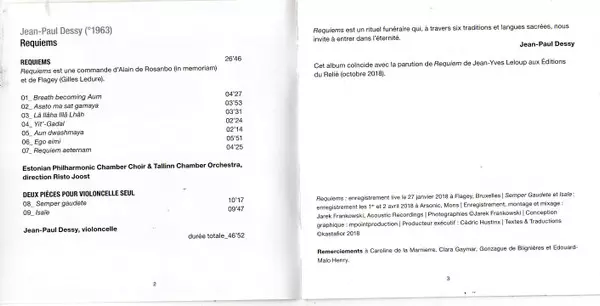 | Adapted By (Text) [Text chosen and Gathered by] Jean-Yves Leloup (2) | Choir Estonian Philharmonic Chamber Choir | Directed By Risto Joost | Orchestra Tallinn Chamber Orchestra | ||