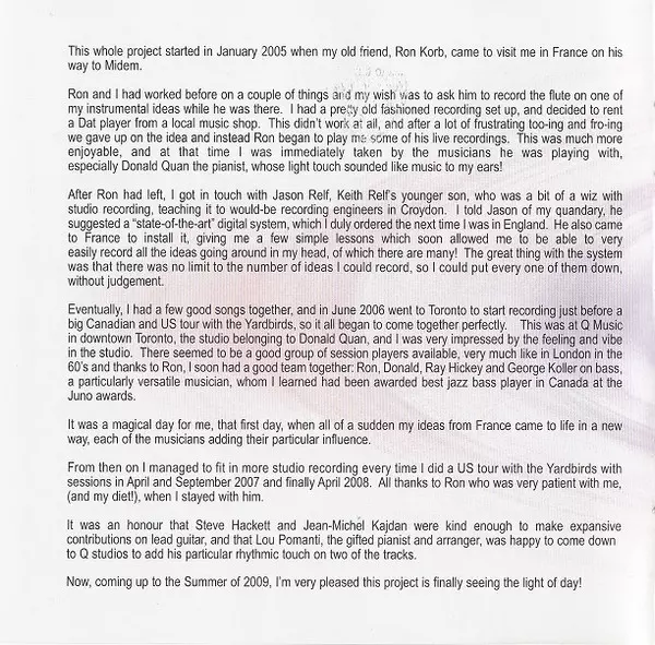 Acoustic Guitar Ray Hickey Jr. | Bass George Koller | Cello, Backing Vocals Anne Bourne | Flute, Bass Flute Ron Korb | Lead Guitar Steve Hackett | Piano, Viola Donald Quan | Vocals, Acoustic Guitar, Drums Jim McCarty