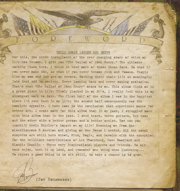 Na bluesovém nebi se objevil jako supernova - ale na rozdíl od záře této krátce žijící hvězdy se tvorba amerického bluesového rockera Joea Bonamassy ukázala jako trvalý fenomén. Nyní jednatřicetiletý hudebník je považován za nejvýznamnějšího nováčka na bluesrockové scéně posledních let a se svým novým albem "The Ballad Of John Henry" se definitivně zařadil do nejvyšší ligy tohoto žánru. Bonamassova hudební poklona "hrdinovi dělnické třídy" - jak sám označuje titulní skladbu nového CD - jde ruku v ruce s jeho dvacátým rokem profesionální hudební kariéry. A konečně je zde další rozdíl oproti krátkému záblesku supernovy: Joe Bonamassa se objevil koncem roku 2005, alespoň v Evropě, jakoby odnikud, ale už tehdy mohl syn majitele kytarového obchodu z Utiky v americkém státě New York ukázat na dlouhou hudební kariéru. Na kytaru začal hrát už ve čtyřech letech: "Otec mi dal kytaru Chiquita s krátkým krkem, ale v sedmi letech jsem přešel na normální nástroj." Ve dvanácti letech hrál jako předskokan B. B. Kinga, který si ho ihned vzal pod svá křídla jako mentora. "Po našem prvním společném vystoupení v Rochesteru mě vzal na turné a já s ním tehdy absolvoval dvacet koncertů - díky němu jsem tehdy poprvé prorazil," vzpomíná Bonamassa o téměř dvě desetiletí později. Od té doby vydal Joe Bonamassa devět sólových desek, "The Ballad Of John Henry" je jeho sedmé studiové album. Kromě toho může odkazovat na CD "Bloodline", které vydal se stejnojmennou kapelou v roce 1994 a na kterém hrál s Waylonem Kriegerem (synem kytaristy Doors Robbyho Kriegera), Erin Davisovou (potomkem Milese Davise) a Berrym Oakleyem Jr. (synem člena Allman Brothers). Z něj vyšly dva singly, "Stone Cold Hearted" a "Dixie Peach", které se dostaly do nižších oblastí americké hitparády. Léta koncertování jako sólista se vyplatila v roce 2000, kdy v USA vyšel jeho sólový debut "A New Day Yesterday" produkovaný Tomem Dowdem. V Evropě vyšel spolu se všemi následujícími alby na začátku roku 2006, kdy Bonamassa vtrhl do Evropy prostřednictvím renomovaného holandského bluesového labelu Provogue/Mascot, představil se evropskému bluesovému publiku s albem "You And Me" a v témže roce zdokumentoval na DVD své vystoupení v kultovním pořadu německé televize "Rockpalast". Od té doby to není jen jeden úspěch za druhým, co se týče vydávání desek a turné. Bonamassa, který mimo pódium působí spíše nenápadně, ale o to prudčeji na pódiu na svou kytaru vybuchuje, přesvědčil publikum i kritiky: Uznávaný internetový časopis "Blues Wax" ho na začátku roku 2008 jmenoval "Umělcem roku", renomovaný americký odborný časopis "Guitarist" ho označil za "Nového krále blues" a zvolil ho "Nejlepším modrým kytaristou"; ne zrovna neznámý kolega Ted Nugent o něm nedávno po společném jam session prohlásil: "Tenhle chlapík patří do stejné třídy jako Stevie Ray Vaughan, Jimi Hendrix a Jeff Beck!" Uznání, kterému se těší v profesionálním světě, se projevilo i tím, že slavný výrobce kytar Gibson vyrobil vlastní model "Inspired By Joe Bonamassa" svého slavného modelu Les Paul Goldtop v limitované edici 300 kusů. Fanoušci to viděli stejně, hrnuli se na jeho koncerty na této i druhé straně Atlantiku a jeho poslední studiové dílo "Sloe Gin" se nejen dostalo do první desítky bluesového žebříčku Billboardu jako všechny jeho předchozí nahrávky, ale debutovalo tam na prvním místě. Nyní - po koncertní nahrávce "From Nowhere In Particular" - na ni plynule navazuje "The Ballad Of John Henry". Bonamassa prokazuje nejen svůj písničkářský talent, ale také vkus a cit pro výběr materiálu zvenčí: ve studiu dal písním Tonyho Joea Whitea ("As The Crow Flies"), Toma Waitse ("Jockey Full Of Bourbon"), Ailene Bullockové ("Funkier Than A Mosquito's Tweeter"), Sama Browna ("Stop!") nebo Anthonyho Newleyho/Leslieho Bricusse ("Feelin' Good") svůj vlastní punc. "Když jsem nahrával první polovinu alba, byl jsem nejšťastnější člověk - šťastnější než kdykoli v životě. Když jsem se pustil do druhé poloviny, bylo to přesně naopak." To Bonamassovi nebránilo v tom, aby na CD zachytil své dosud nejsilnější dílo, a to jak po stránce autorské, tak i po stránce výbušné a složité kytarové hry. "Píseň 'Happier Times' jsem napsal, když jsem byl až ve sklepě - je to asi nejlepší a nejupřímnější píseň, jakou jsem kdy napsal," prozrazuje jednatřicetiletý zpěvák. Skutečnost, že v nedávné minulosti hodně prožil a prožíval, se odrazila v několika písních, které se točí kolem vztahů. Například "Last Kiss", která pojednává o nevydařeném vztahu. Nebo ve "Velké potopě", což je něco jako omluvný dopis bývalému partnerovi, s nímž nyní udržuje dobré přátelské vztahy. "Měl jsem pocit, že v sobě nosíme příliš mnoho nevyřčeného, co bychom měli někdy vyjádřit slovy," shrnuje. Joe Bonamassa nahrál "The Ballad Of John Henry" opět s takovými esy, jako jsou Carmine Rojas (baskytara), Anton Fig a Bogie Bowles (oba bicí) a Rick Melick (klávesy) a Blondie Chaplin (rytmická kytara). Poprvé za svou dlouhou kariéru pracoval s hráči na dechové nástroje: O další zvukovou barvu se postarali Lee Thornburg a David Woodford pod novým vedením veterána Kevina Shirleyho (Led Zeppelin, Aerosmith, Black Crowes). Ale Bonamassa by nebyl sám sebou, kdyby se nedíval dál než jen na tvorbu hudby: Podílí se na programu Blues Foundation's Blues In The Schools Program, pracuje jako sloupkař pro odborný časopis Guitarist a - pokud není na turné - každý všední den moderuje svůj čtvrthodinový seriál "Daily Cup Of Joe" na satelitní rozhlasové stanici Sirius. A vždy v úterý ho můžete slyšet na britské rozhlasové stanici Planet Rock v jeho v