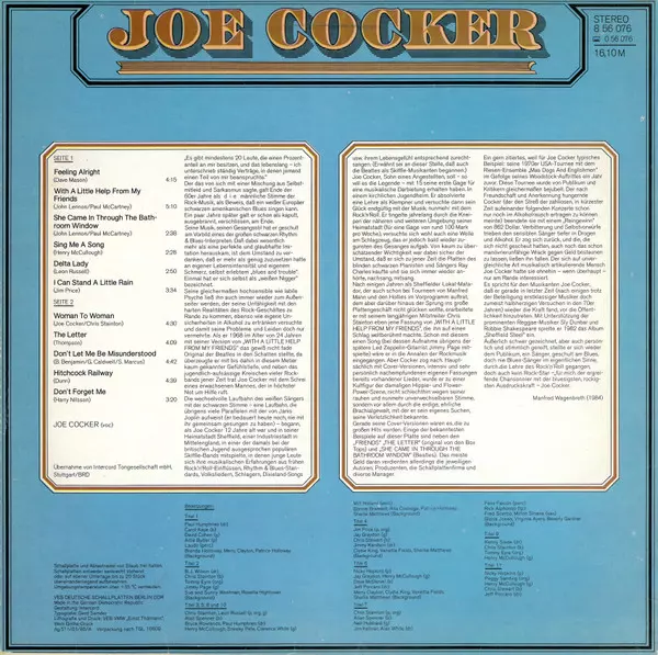 Joe Cocker: Joe Cocker Wersja na winylu LP w standardowe wydanie. Ta konkretna edycja została wydana w Republika Federalna Niemiec w wydawnictwie AMIGA roku 1985. Album sięga do gatunku Rock, Pop Rock i Classic Rock.