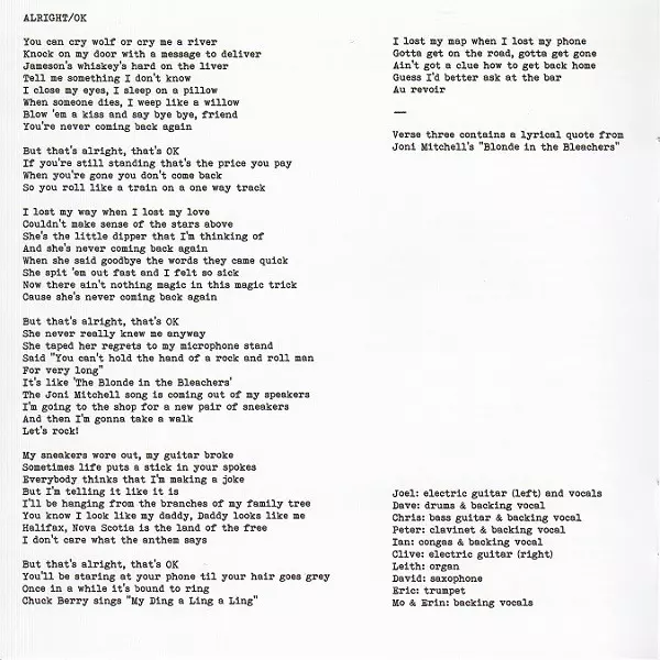 Bass Tim Brennan | Drums Dave Marsh (3) | Electric Piano [Rhodes] John Boudreau | Organ Peter Elkas | Pedal Steel Guitar Dale Murray | Vocals, Electric Guitar Joel Plaskett