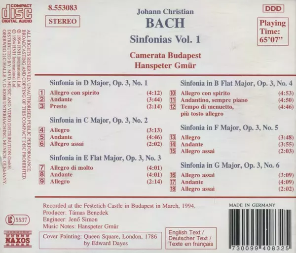 Wykonawca | Johann Christian Bach | Hanspeter Gmür | Camerata Budapest |