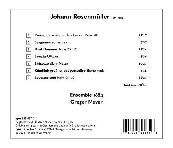 | Wykonawca | Gregor Meyer | Johann Rosenmüller | Ensemble 1684 |