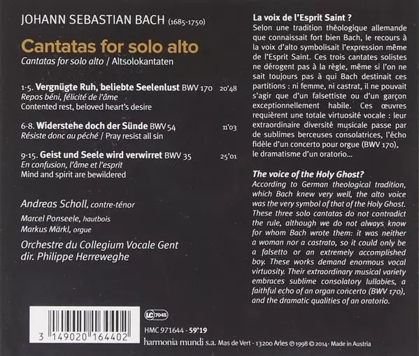 | Wykonawca | Johann Sebastian Bach | Andreas Scholl | Philippe Herreweghe | Collegium Vocale |