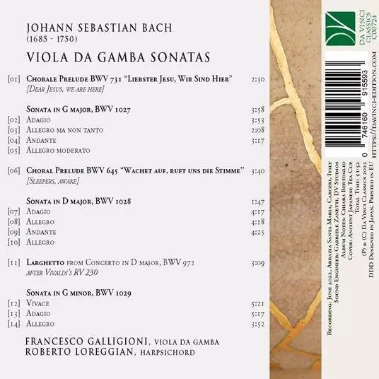 | Tytuł | Viola Da Gamba Sonatas, Chorale Prelude BWV 731・645, Larghetto From BWV 972 |