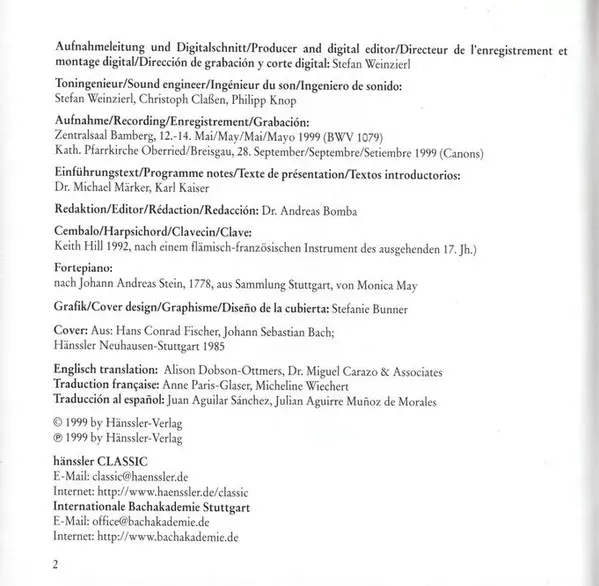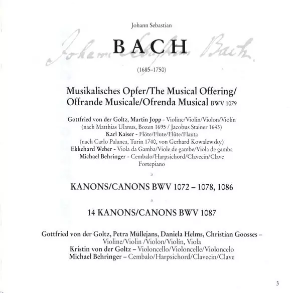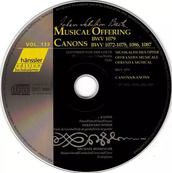 | Tytuł | Musical Offering BWV 1079 / Canons BWV 1072 - 1078, 1086, 1087 |
