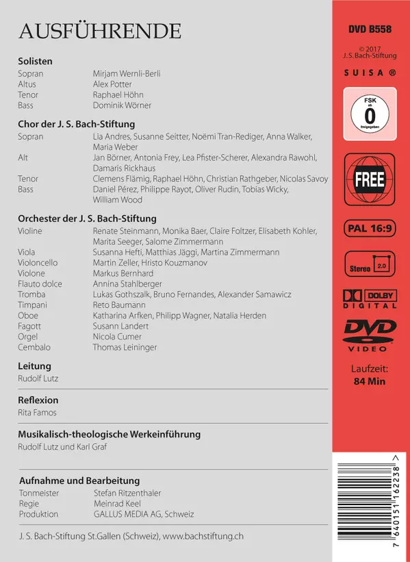 Wykonawca | Johann Sebastian Bach | Rudolf Lutz | Chor & Orchester Der J.S. Bach Stiftung St. Gallen |