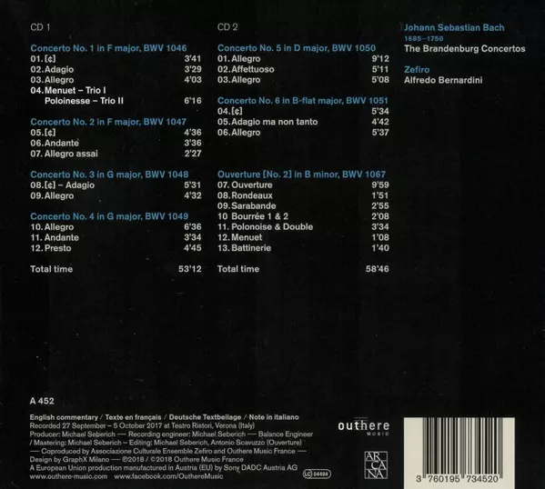 Wykonawca | Johann Sebastian Bach | Zefiro | Alfredo Bernardini |