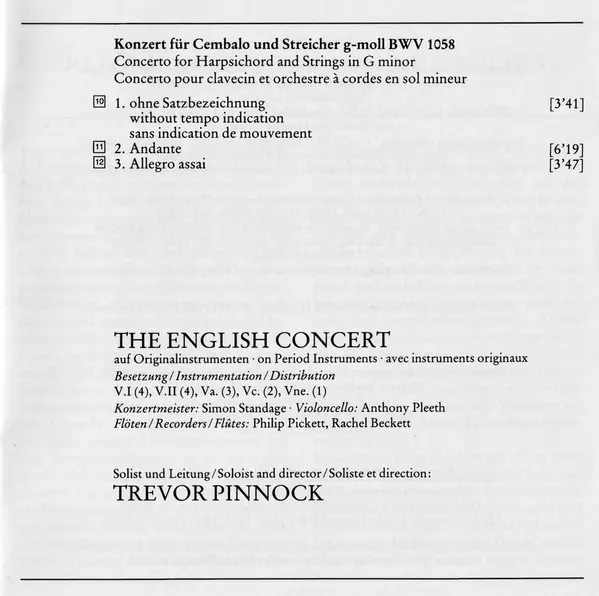 | Wykonawca | Johann Sebastian Bach | Trevor Pinnock | The English Concert |