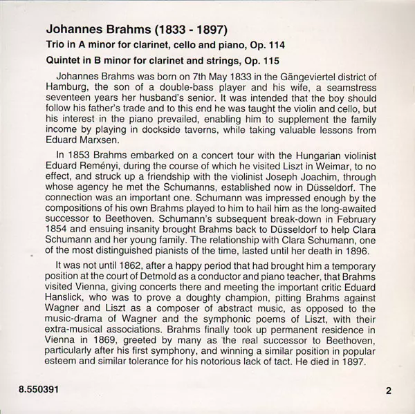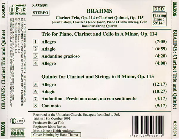 Tytuł | Clarinet Trio, Op. 114 / Clarinet Quintet, Op. 115 |