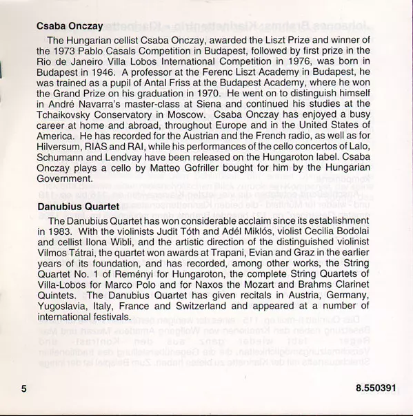 Wykonawca | Johannes Brahms | Jenö Jandó | József Balogh | Csaba Onczay | Danubius String Quartet |